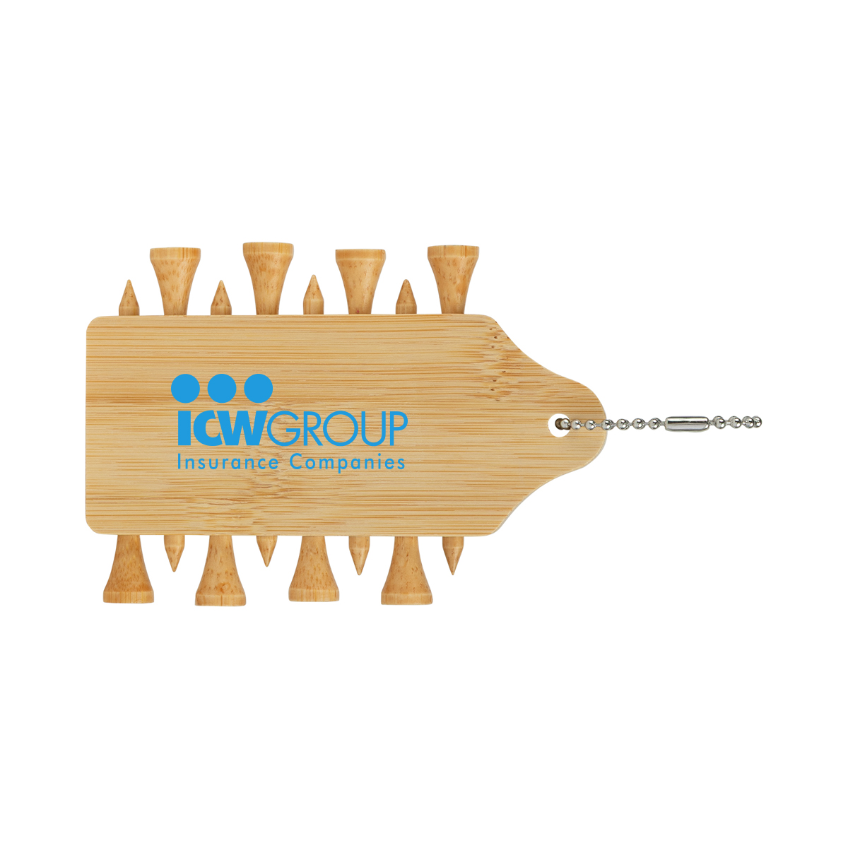 Whether you’re a beginner or a seasoned pro, this eco-friendly golf tee set with help your golf game! Made of Bamboo, 8 of these 2 3/4″ tees fit snuggly inside the bamboo tee holder. This tee set can also be used as bag tag with ball chain included. Decoration on tee holder only.